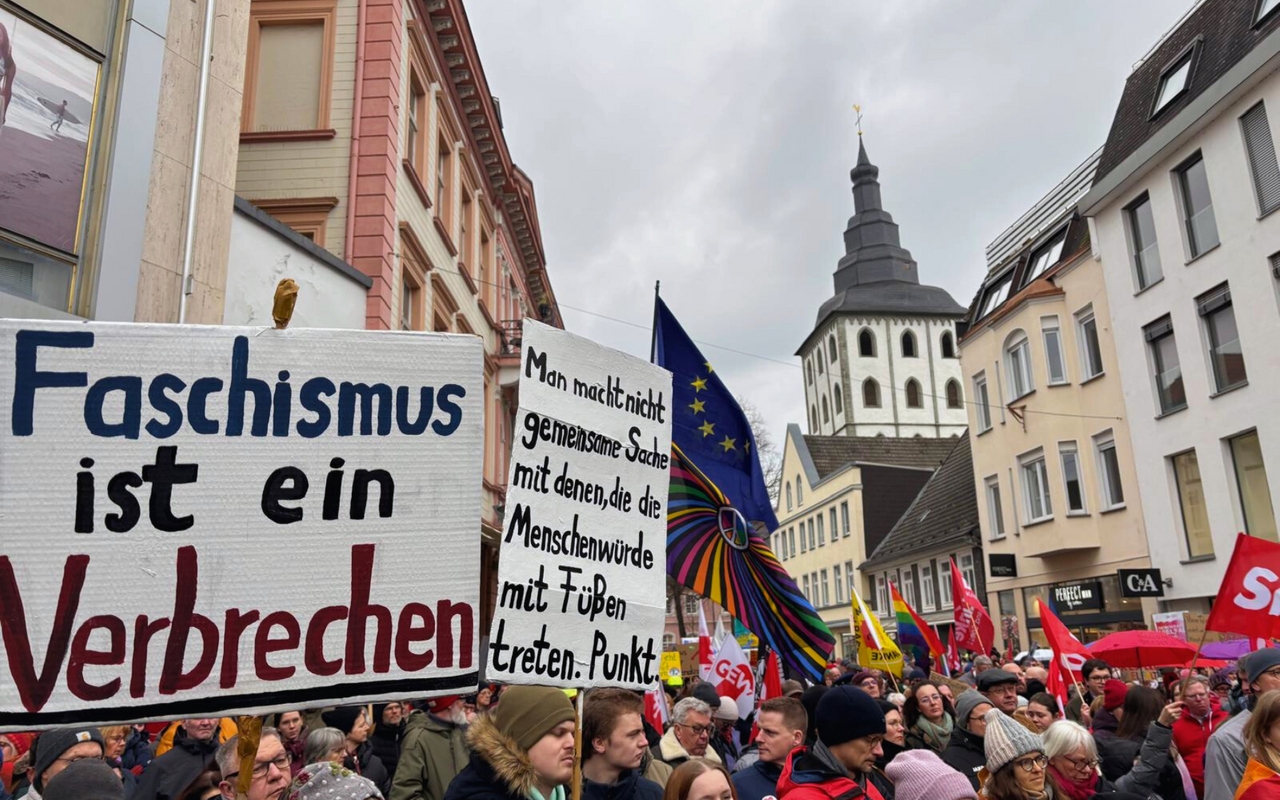 Diesen Samstag (15. Februar 2025) fanden in der Lippstädter Innenstadt zwei Versammlungen statt: eine Wahlkampfveranstaltung der AfD auf dem Rathausplatz und eine Gegendemonstration mehrerer Initiativen: der Gewerkschaften Verdi, IG Metall, der DGB, das „Lippstädter Netzwerk für Frieden und Solidarität“, das „Klimanetzwerk“ und die „Aktion Buntes Lippstadt“.