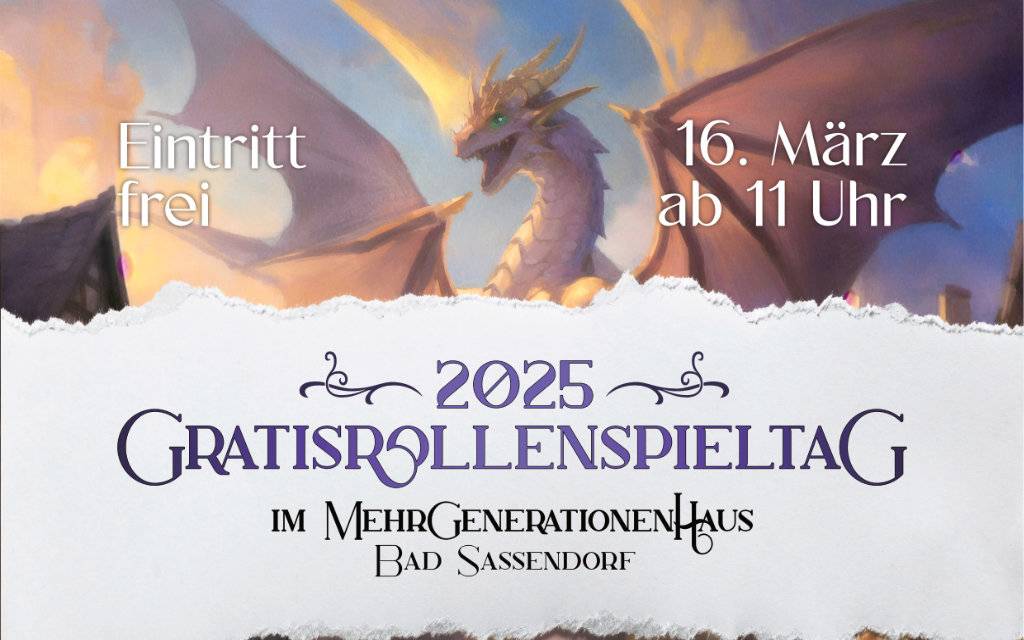 Am Sonntag, den 16.03., laden wir von Würfeljagd euch zum Gratisrollenspieltag 2025 nach Bad Sassendorf ein! Egal, ob ihr schon Erfahrung mit Pen-and-Paper-Rollenspielen habt oder einfach mal reinschnuppern wollt – bei uns könnt ihr in spannende Abenteuer eintauchen. Wir bieten sechs verschiedene Rollenspielrunden an, dazu offene Brett- und Gesellschaftsspiele, Magic: The Gathering und einen Workshop, in dem ihr lernt, eure eigenen Spielrunden zu leiten. Anfänger sind herzlich willkommen und müssen nichts mitbringen – wir haben alles da, was ihr braucht. Der Eintritt ist frei, und eine Anmeldung ist nicht nötig. Kommt einfach vorbei und spielt mit uns! Mehr Infos findet ihr auf www.wuerfeljagd.de/grt-2025.
