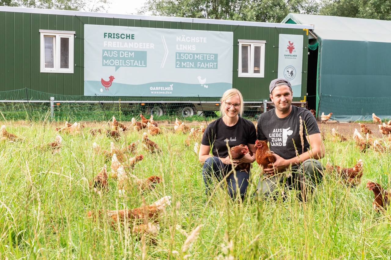 Gerade mal ein knappes Jahr gibt es das Garfelner Wiesenglück. Das junge Pärchen Kirsten Gierse-Westermeier und Joey Klie hat sich ganz der Landwirtschaft verschrieben. Sie haben eine eigene Mutterkuh-Herde, die im Moment auf dem Hof von Kirstens Bruder untergebracht ist, aber auch rund 400 Legehennen, die in einem mobilen Hühnerstall auf einer gepachteten Wiese in der Nachbarschaft leben. Ihre Produkte verkaufen sie auf dem Lippstädter Wochenmarkt und in einem eigenen Automaten gegenüber von ihrem jetzigen Zuhause. In Zukunft wollen Kirsten Gierse-Westermeier und Joey Klie auch einen eigenen Hof kaufen. Friederike Umminger hat sie besucht.