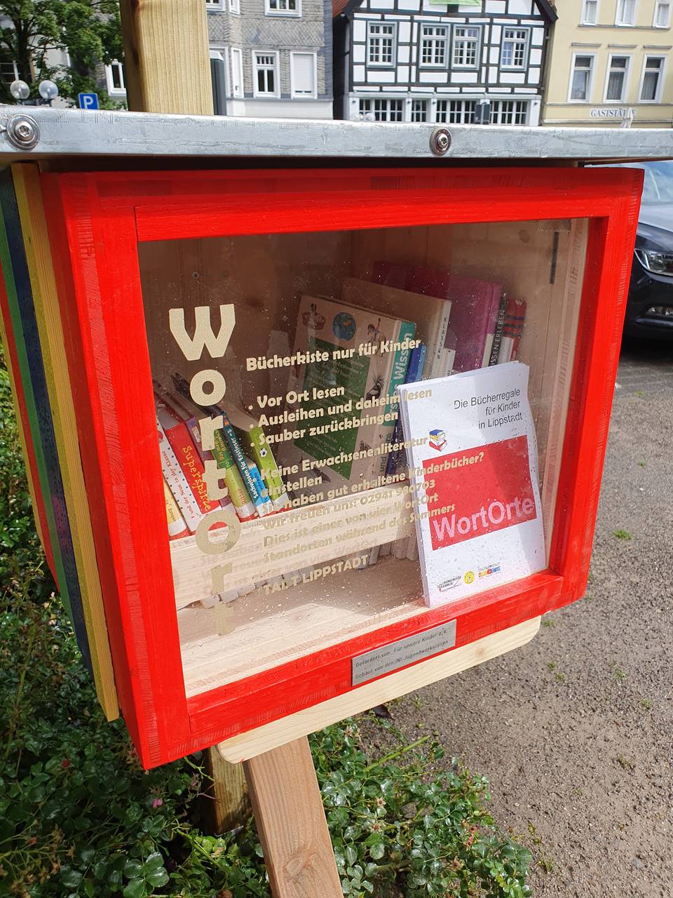 Kindern Lust aufs Lesen machen: Das ist das Ziel der neuen sogenannten WortOrte in Lippstadt. Dabei handelt es sich um Bücherkästen mit Büchern für Kinder bis zum Grundschulalter, die an verschiedenen Orten in der Stadt stehen. Die Kinder können die Bücher direkt vor Ort lesen. Kurz ausleihen, zuhause lesen und zurückbringen geht aber auch.