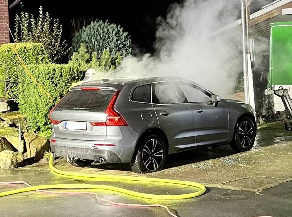 Ein Auto brennt, andere sind beschmiert und haben zerstochene Reifen – dieses Bild fanden Polizei und Feuerwehr in Lippstadt vor. Passiert ist das Ganze am Freitag gegen 21 Uhr auf einem Hof in Benninghausen. Der Eingentümer hat die Feuerwehr gerufen, weil sein Auto brannte.