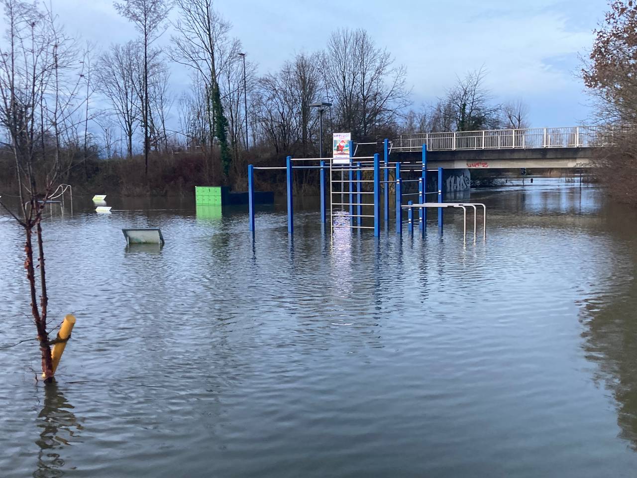 Sollte es zu einem Deichbruch kommen, besteht keine Lebensgefahr. Ausschließlich Gegenstände könnten durch eine Überflutung beschädigt werden.