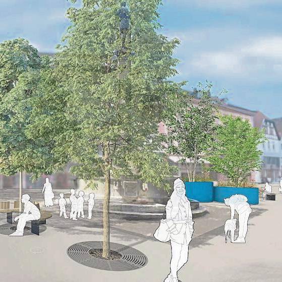 In der Nähe des Brunnens sollen drei mittelgroße, robuste Bäume gepflanzt werden, die sich gut an das urbane Klima anpassen. Zusätzlich werden fünf unterschiedlich große, farbige Pflanzkübel aufgestellt, in denen mehrstämmige Kleingehölze wachsen. Die Kübel sind mobil und können bei Veranstaltungen wie der Herbstwoche leicht umgestellt werden. Der Bereich wird mit geschwungenen Sitzbänken aus Holz und Metall ausgestattet, die Schatten spenden und Komfort bieten. Gleichzeitig bleibt Platz für die Außengastronomie des nahegelegenen Poppins-Cafés. Über die Gestaltung, insbesondere die Farbe der Pflanzkübel, wurde lebhaft diskutiert. Es wurde angeregt, Muster im weiteren Planungsprozess zu prüfen. Die politische Zustimmung für das Projekt war groß, und die Stadt erhielt den Auftrag, die rund 137.000 Euro teure Maßnahme in den Haushalt aufzunehmen. Fördermittel sollen geprüft werden.
