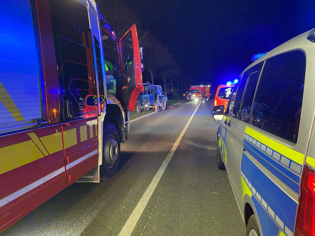 Die Feuerwehr sicherte die Unfallstelle und leuchtete diese aus, um eine schnelle und sichere Rettung zu gewährleisten. Glücklicherweise war die Feldspritze des Traktors zum Zeitpunkt des Unfalls leer, sodass keine gefährlichen Spritzmittel ausliefen. Auch aufgrund des geringeren Gewichts der leeren Spritze war die Aufprallkraft des Unfalls vermutlich etwas schwächer als bei einem vollbeladenen Traktor.