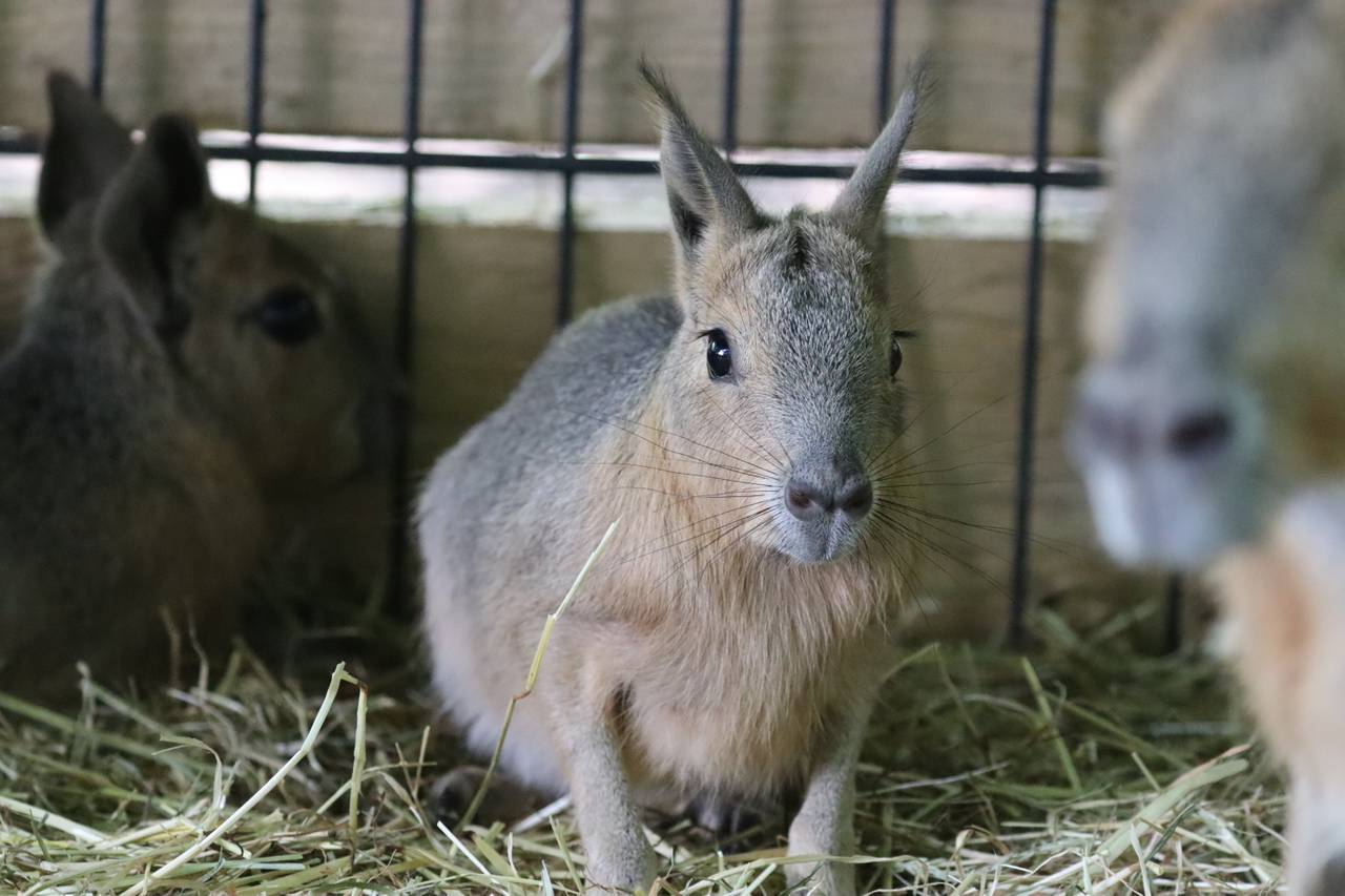 Für ein besseres Kennenlernen der neuen Familie und für eine geeignete Mutter-Kind-Bindung waren die Großen Maras einige Zeit nicht auf der Wiese der Südamerikaanlage zusehen. Seit einigen Tagen erkunden aber auch die Jungtiere zusammen mit ihren Müttern die große Außenanlage und lernen ihre weiteren Mitbewohner kennen: Die Guanakos und Nandus. Große Maras gelten als potentiell gefährdet.