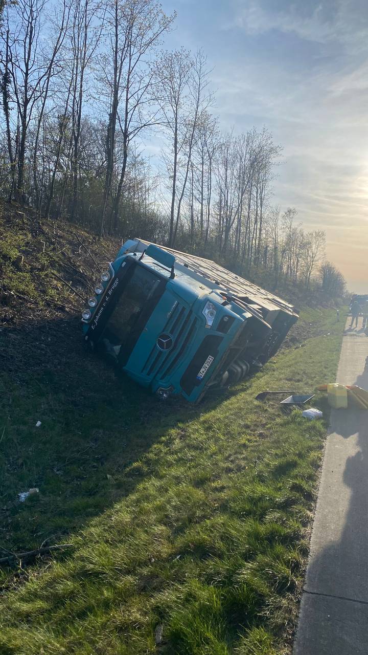 Dazu musste ein Schwerlastkran den LKW aus dem Graben zurück auf die Straße holen. Der LKW-Fahrer blieb körperlich unverletzt, stand aber unter Schock.